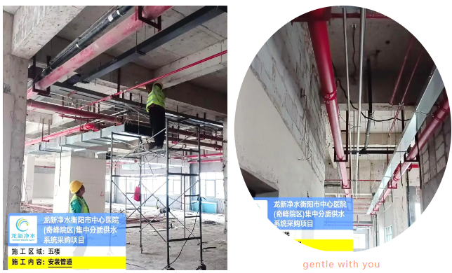 近日,龍新凈水為衡陽市中心醫(yī)院(奇峰院區(qū))集中分質(zhì)供水系統(tǒng)工程正在井然有序的施工中....