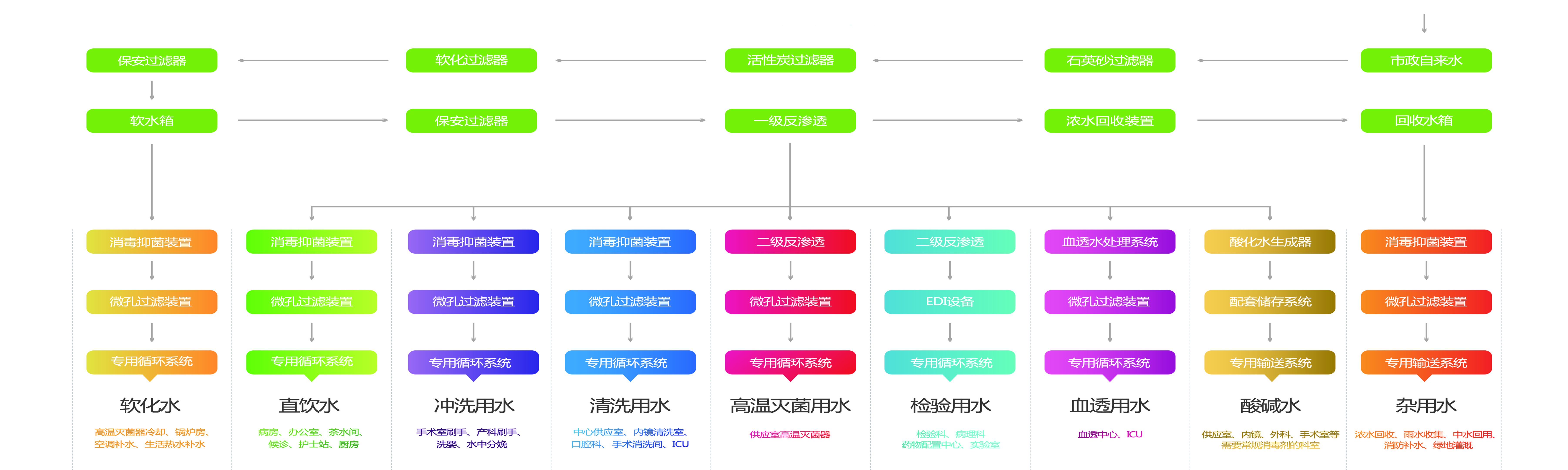 醫(yī)院水處理、醫(yī)院超純水、醫(yī)院特種用水、醫(yī)院分質(zhì)供水、中央純水、中央水系統(tǒng)、醫(yī)院直飲水